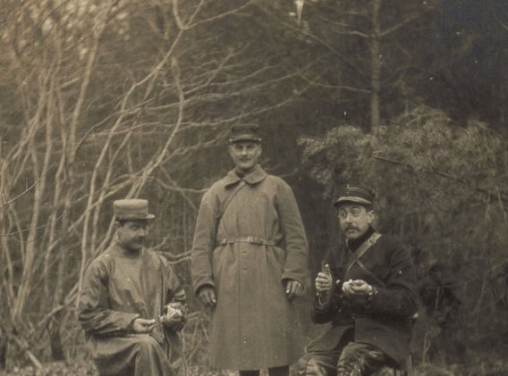 6 mars : Notre position avancée commence à s’installer. Un abri a été creusé près de la pièce pour l’officier de service. C’est un abri enterré recouvert de deux solides couches de rondins. L’aménagement intérieur n’est pas très confortable mais peu importe et nous y dormirons tout de même. L’important est que nous avons un poêle : le reste est secondaire. Le lit est fait de branches d’arbres recouvertes de paille. C’est dans cet asile que nous nous relevons Dumay et moi tous les 3 jours : nous avons trouvé en effet qu’il était fastidieux de faire tous les jours le trajet de 7 kilomètres qui nous séparent du Claon. J’ai dans ma cagna, à côté de mon lit mon appareil téléphonique qui me permet de communiquer rapidement avec tous les postes dans un rayon de 10 kilomètres. Le soir je peux ainsi souhaiter bonne nuit au camarade qui est à l’autre section à plus de 5 km. Je peux également communiquer avec le cantonnement à plus de 7 kilomètres : je ne suis donc pas seul. C’est le téléphone qui me réveille à 5h30 pour la vérification de la ligne. Naturellement je ne me rendors pas et mon premier travail est d’aller ramasser du bois mort dans la forêt prochaine pour allumer mon feu. Ceci fait je procède à ma toilette dans un seau d’eau que m’apporte le fidèle Somme ou quelque autre téléphoniste pendant que mon chocolat au lait sec mijote sur le coin de mon poêle. Après mon petit déjeuner je fais mon lit c’est à dire que je plie mes deux couvertures et donne un ou deux coups de poing dans ma couche de paille, puis le ménage. Vers 7 heures en général tout est paré et je peux recevoir. A 10 heures se place une opération for importante. Je dois bourrer mon feu d’une bonne provision de bois de manière à avoir à 11 heures une couche de braises pour faire cuire ma « bidoche ». La préparation de mon fricot et l’ingurgitation d’ycelui m’’occupent de 11 heures à midi. Le même cérémonial se répète le soir de 18h à 20h. Tout cela évidemment n’est pas très belliqueux mais à la guerre on fait un peu de tout : on se bat même parfois.