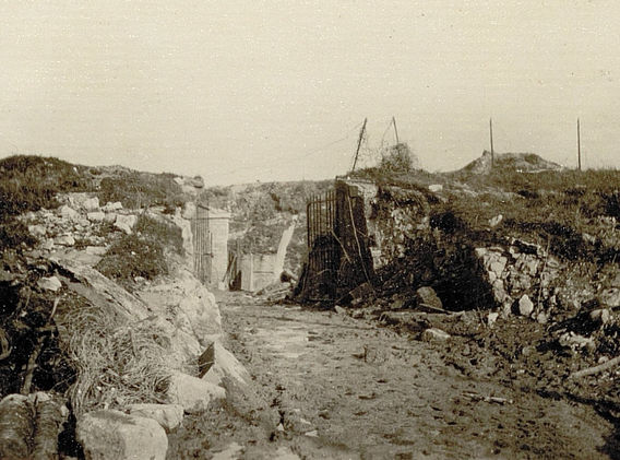 1er novembre : Dans l’après-midi je remonte au fort de Tavannes effectuer un réglage sur la région d’Hardaumont. Je profite de cette occasion pour me présenter au commandant de Champsavin qui commande le fort depuis de longs mois. Il a pu assister ainsi aux premières loges à la bataille de Verdun. Atteint très sérieusement par les gaz asphyxiants il n’a pas voulu se laisser évacuer et mène depuis ce moment un état de santé très chancelant. Il habite en ce moment dans les locaux bétonnés du fort qui ont admirablement résisté aux bombardements d’obus de gros calibres. Les moellons des voutes ne présentent aucune fissure. Ces locaux bétonnés ne sont d’ailleurs pas très vastes et ne peuvent guère contenir qu’une compagnie. On est en ce moment en train de les réunir au tunnel de Tavannes par une galerie de raccordement. Il est à signaler que ce fort de Tavannes, cuirassé en béton ordinaire, a parfaitement résisté alors que le fort voisin de Moulainville, cuirassé en béton armé, a été rapidement mis hors de combat. Les boches tirent aujourd’hui assez vivement dans la région du fort.