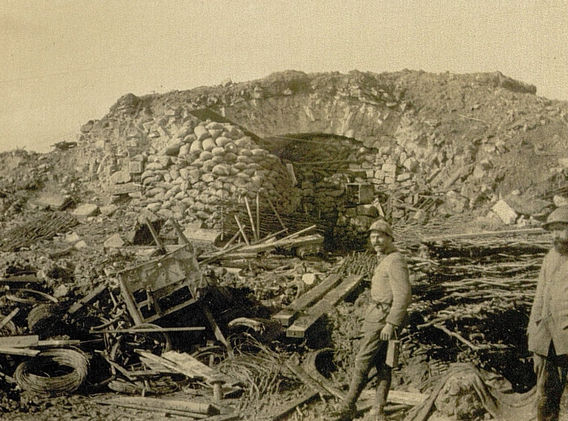 9 octobre : Aujourd’hui continuation des tirs de réglage. A cet effet je pars avec Dumay, Lacheret et Goosen pour l’observatoire de Souville est où nous sommes complètement chez nous. Le chemin qui mène à cet observatoire est un peu plus long mais la vue est très bonne. Si la batterie ouest de Souville est bouleversée, que dire de la batterie est ? C’est ici le néant et l’horreur. Au milieu d’une terre boursouflée comme par une éruption volcanique court un semblant de boyau plein d’une boue horrible. De ce chaos émergent les objets les plus hétéroclites : des pièces d’équipement, des crosses de fusils, une roue de canon et même un canon de 85 dont on ne voit plus que la culasse. Il y a même d’horribles débris humains et en particulier un conducteur d’artillerie sur son cheval, tombés là depuis plusieurs mois et qui sont complètement momifiés. Le lieu est vraiment tragique. Le fort de Souville à notre gauche n’est qu’une chose informe. A droite quelques voûtes encore debout représentent tout ce qui reste des casemates de la batterie est.