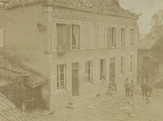 24 septembre : Dans la matinée je vais jusqu’à la Louvière faire une petite promenade et à 11 heures je suis de retour au cantonnement. A 11h1/2 alors que nous allons nous mettre tranquillement à table j’entends tout à coup le sifflement caractéristique d’un obus de 150. Nous nous précipitons à la fenêtre : l’obus est tombé près de la Tuilerie. Un second arrive bientôt en plein dans le pignon de la maison puis un 3ème, jusqu’à huit, tous ces coups étant remarquablement groupés autour de la Tuilerie. Nous nous précipitons de ce côté car nous y avons plusieurs hommes et tous nos chevaux. Si parmi les premiers nous n’avons heureusement aucune perte à déplorer il n’en n’est malheureusement pas de même des seconds. 4 de nos meilleurs chevaux sont horriblement déchiquetés. D’autres chevaux ont été tués ou blessés au voisinage, mais par bonheur aucun homme n’a été blessé. L’adjudant Lemasson l’a cependant échappé belle. Comme il aidait quelques hommes à sortir les chevaux des écuries un obus tombé à 2 ou 3 mètres de lui l’a projeté à terre, complètement abasourdi. Il est obligé de s’aliter. Nous jugeons prudent en prévision d’une reprise probable du tir de déplacer nos chevaux et de les conduite au nord-est du village à la lisière du bois. Ceci fait nous examinons plus attentivement les dégâts.